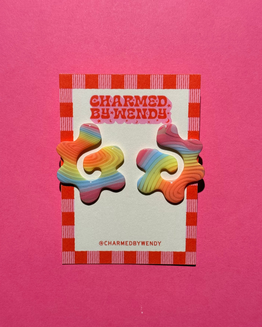 Handcrafted polymer clay earrings featuring a mesmerizing spiral design in vibrant rainbow swirl colors. Hypoallergenic titanium posts make them ideal for sensitive ears, ensuring comfort for all-day wear.